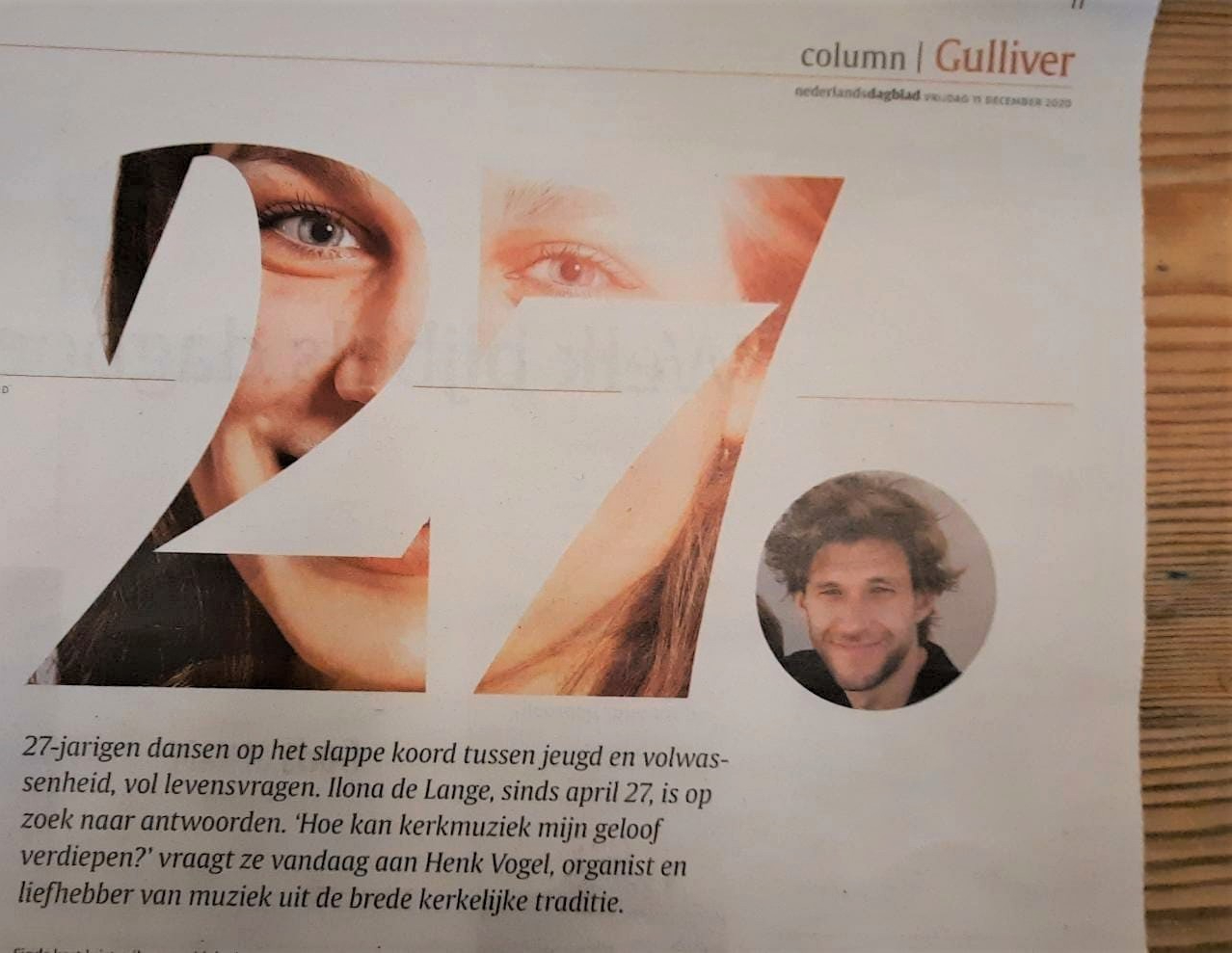 Afgelopen vrijdag verscheen een interview met mij in het Nederlands Dagblad. Het was een gesprek met Ilona de Lange rond de vraag ‘Hoe kan kerkmuziek mijn geloof verdiepen?’ voor haar rubriek ‘Levensvragen van een 27-jarige’. De kern van mijn antwoord was: liturgie en kerkmuziek kan je uit je eigen subjectiviteit halen. Je zingt woorden voor en namens anderen, en met het kerkelijk jaar stap je in een ritme en, voor een deel, uit je gevoelsleven van dat moment – als oefening om buiten jezelf te kijken. Aan het slot van het interview gaf ik wat kijk- en luistertips. Later schoten me er nog meer te binnen, dus ik besloot er hier een bericht aan te wijden.
