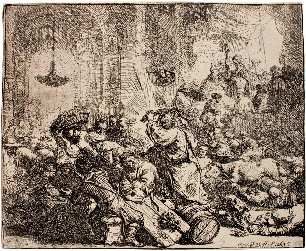 Rembrandt van Rijn, Christus verjaagt geldwisselaars uit de tempel / Jesus driving the merchants from the temple, 1635