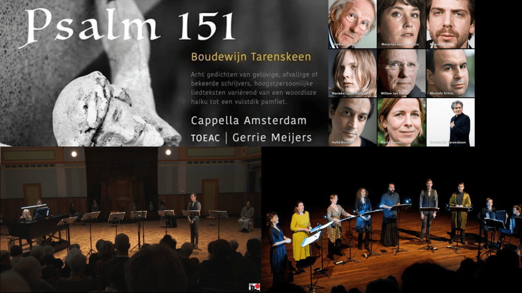 Psalm 151 was een project van componist Boudewijn Tarenskeen. Hij vroeg acht auteurs die bekendstaan om hun publieke reflectie op religie en samenleving om een nieuwe psalm te schrijven. Hij zette de teksten van Marieke Lucas Rijneveld, Freek de Jonge, Hafid Bouazza, Marjolijn van Heemstra, Willem Jan Otten, Ramsey Nasr, Maria Barnas en Mustafa Stitou vervolgens op muziek. Psalm 151 werd gezongen door zeven professionele zangers van Cappella Amsterdam, begeleid op orgel, en op plaatsen zonder orgel, door twee accordeons. Met zijn project wilde Boudewijn Tarenskeen ‘nieuwe taal zoeken voor ons spirituele reservoir’, omdat, volgens hem, de kerk niet meer in staat zou zijn om die te leveren.
