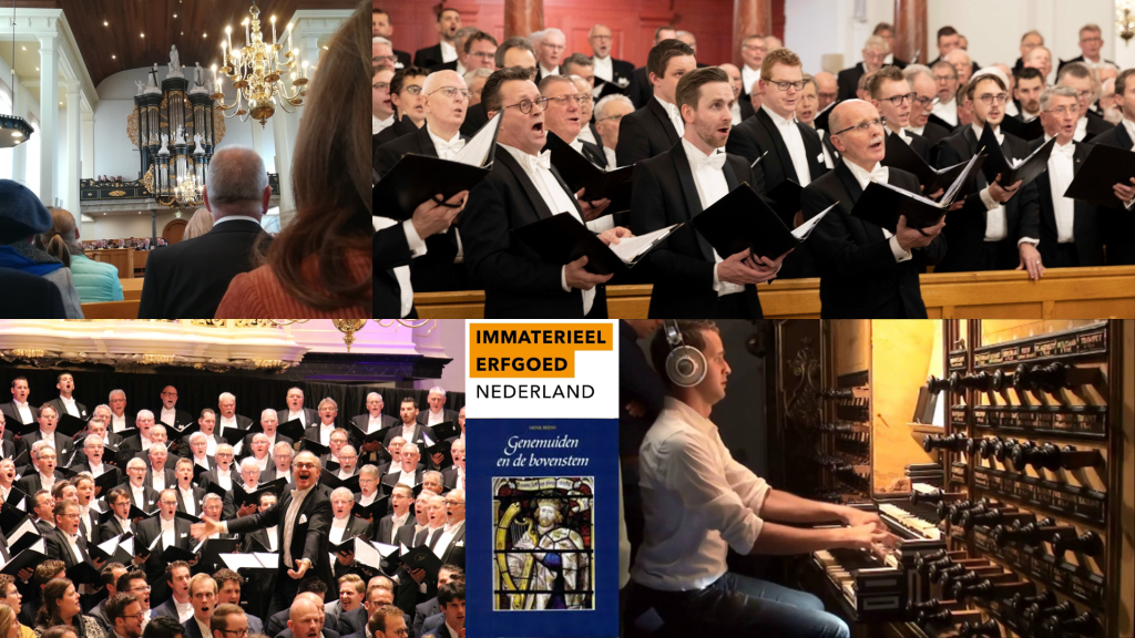 concertimpressie (Joriskerk Amersfoort), beeldmerk Immaterieel Erfgoed Nederland, boekomslag Henk Beens, Genemuiden en de bovenstem, André Nieuwkoop (YouTube)