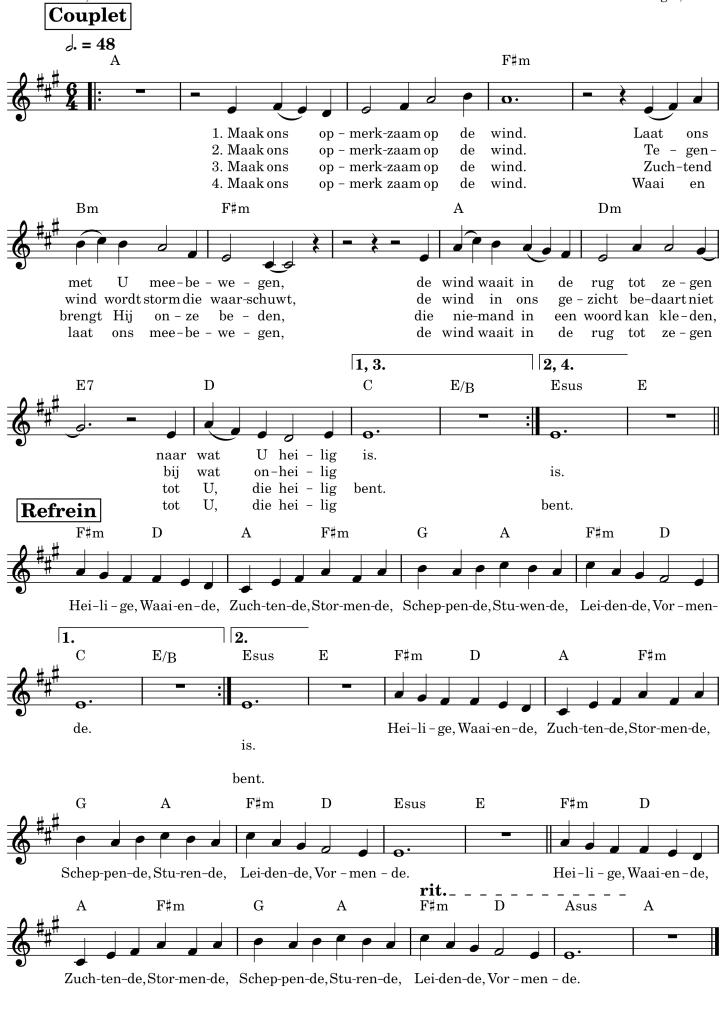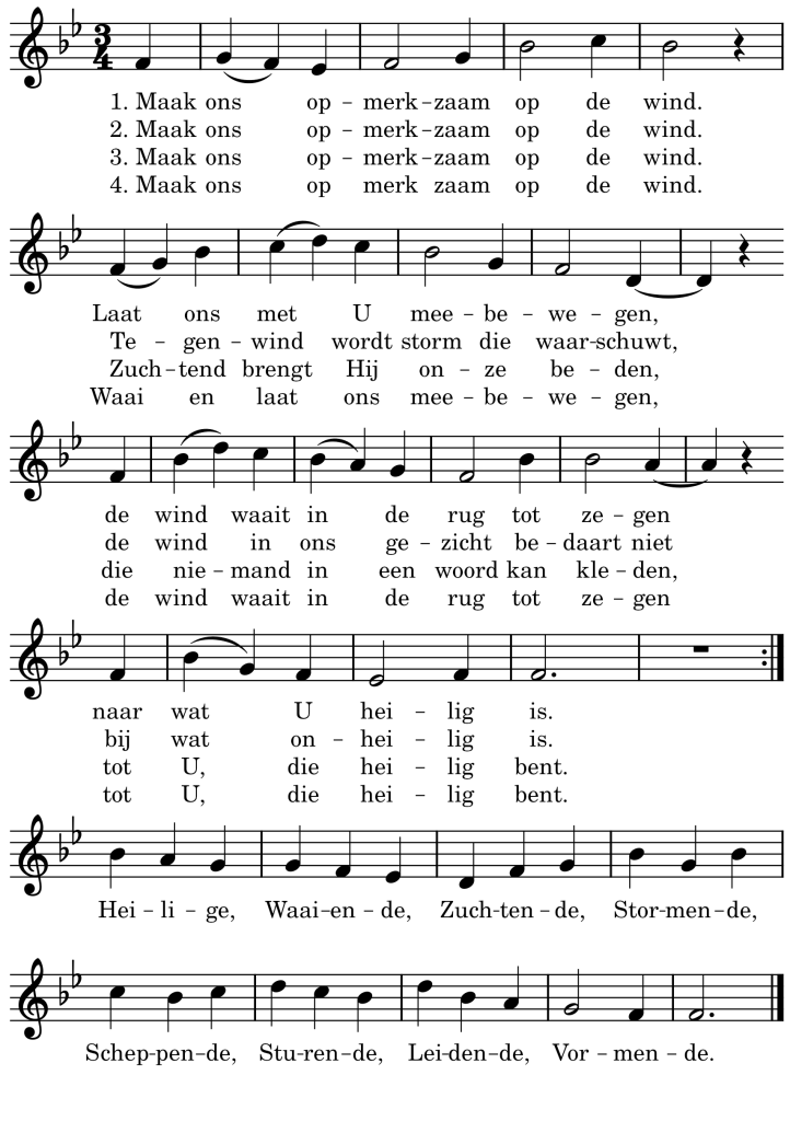 Robert Roth plaatste op Facebook een liedtekst die me aansprak. Er was alleen nog geen melodie, dus ik wist wat me te doen stond. Onder de titel ‘Wind’ verkent hij allerlei aspecten van de wind als beeld voor de heilige Geest, en zo kwam ik op het idee om me te laten inspireren door de aloude Pinksterhymne Veni Creator Spiritus (‘Kom Schepper Geest’). Ik maakte zowel een ‘klassiek gezang’ als een poplied op basis van dezelfde melodie.