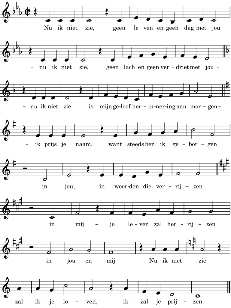 Dank je, Peter! Grappig, zo had ik die toonsoorten nog niet ervaren, maar ik snap wat je bedoelt. Ik wilde er ook het verrijzen in uitdrukken en een groeiend vertrouwen. Door terug C uit te komen kan het lied gemakkelijker herhaald worden (eerst voorzang bijvoorbeeld), vooral pragmatisch ingegeven dus.